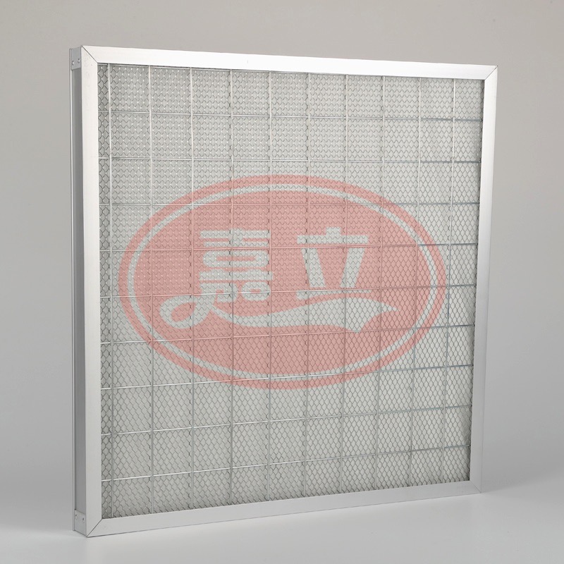 3)滤材外可以选择使用铝扩张网包覆滤材,可以有效支撑滤网承受大风量不易变形。
